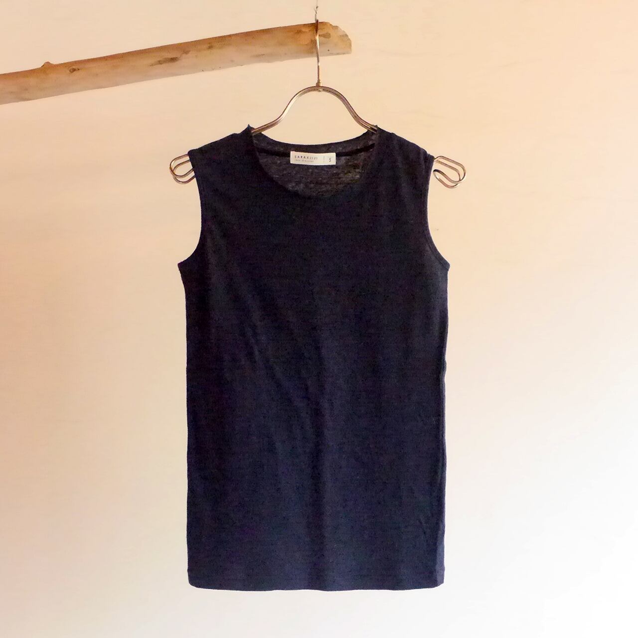 タンクトップの着丈は他の同素材カットソーより2cm長めに作っています。