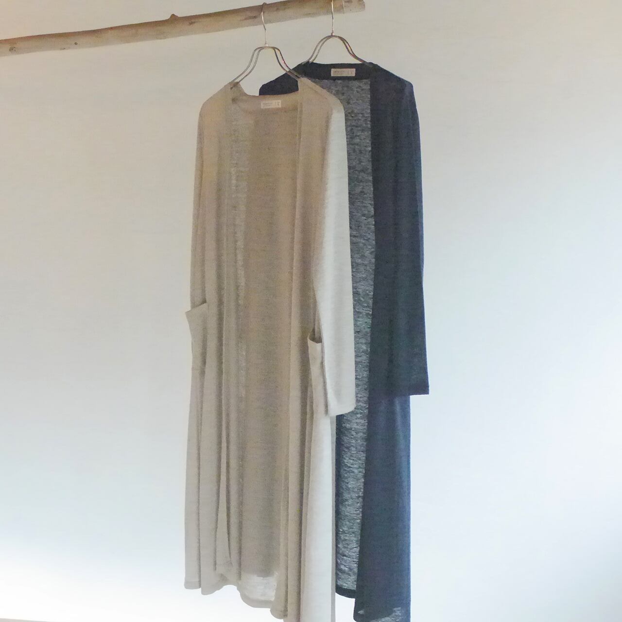 ベルギーリネンニット フレアロングカーディガン NATURAL