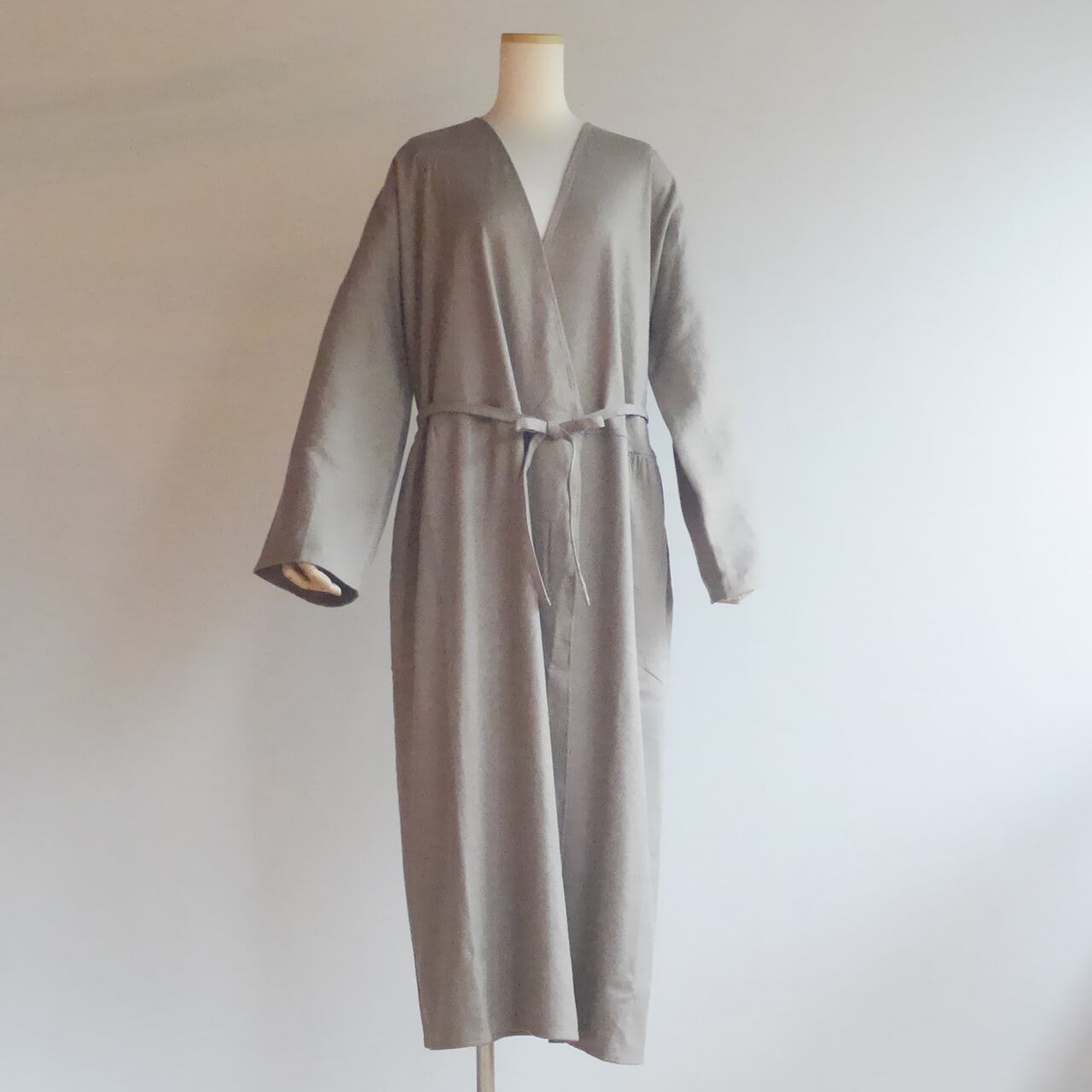 綾織絹麻ラップワンピース(灰茶)OP-10